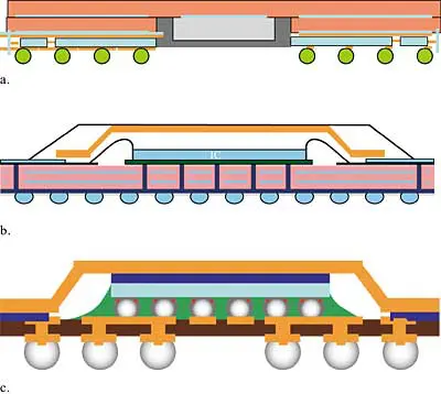 Once the first PBGA packages were commercialized it was inevitable that new designs would proliferate. Most of the internal features of the PBGA package are determined by the patterns in the CAD drawings, which are replicated in the photolithographic process used in PCB manufacture. A few strokes of the designer’s mouse can dramatically change the internal construction of the package.