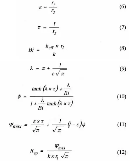 Equation (12) gives the thermal conduction spreading resistance from Tmax to the convective surface.