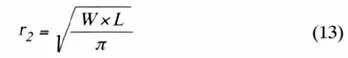 Figure 5. Non-square thermal spreader plate geometry.Calculations were also performed to assess the accuracy of the simplified formulas when applied to a non-square thermal spreader plate. The geometry considered is shown in Figure 5. In this case the value of r2 to use in equations (6) and (7) is given by: