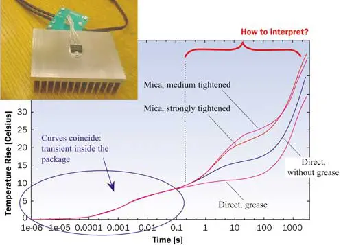 Today it is commonly accepted that dynamic thermal measurements, which have been used for more than 20 years [1], [2], [3], [4], are superior to steady-state ones. The temperature vs. time function – often called the thermal step-response function, heating curve, or thermal impedance curve – is characteristic of the chip-to-ambient structure, including even different cooling and assembly mounts. In other words, by measuring the thermal dynamics at the junction, we can gather all information about the geometrical and material properties of the chip surroundings, and then, by appropriate evaluation, we can gain insight into the measured thermal structure.