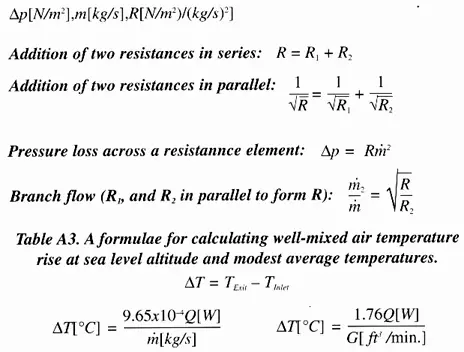 table cellspacing=”0″ A2. Formulae for combining and using airflow resistances.