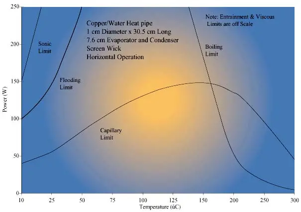 | Viscous | Viscous forces prevent vapor flow in the heat pipe | Heat pipe operating below recommended operating temperature | Increase heat pipe operating temperature or find alternativeworking fluid |