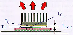 In higher-power applications it is often necessary to attach a heat sink to the top of the package to keep the junction temperature of the chip within specified limits. The presence of a sufficiently large heat sink can cause the heat flow path out of the package top to become dominant.