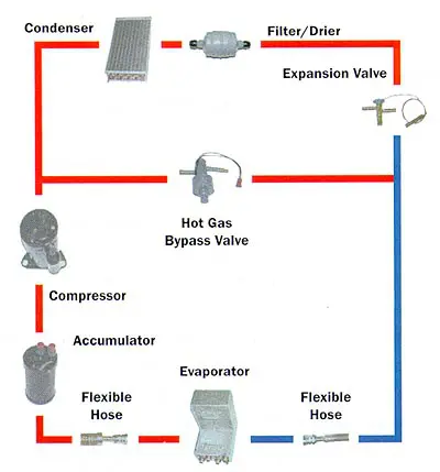 A schematic of the components within the refrigeration system appears in Figure 3. The components of the refrigeration system will now be described.