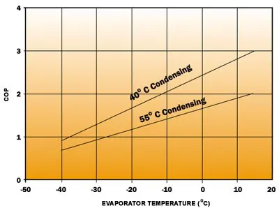 Figure 5. COP for the S/390 G4 refrigeration cycle (R134a).