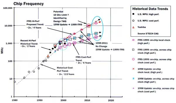 Figure 1. Projection of silicon device frequency as a function of time [4].