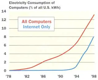 Another example is the report by Matthew Jones [8] on the power demand for London’s data centers. He says, “Internet hotels, sometimes known as ‘telco hotels’, house file servers and other essential information technology hardware for web-based businesses. The trend for increasingly large centers is driven by rising Internet use and companies’ needs to improve the reliability of their sites. The vast data centers, each expected to cover an area of up to 50,000 square meters, will require enough electricity to power two cities the size of Bristol. Much of the energy will be used to power the water coolers needed to avoid overheating of the servers. Silicon Valley in California, the world’s greatest concentration of new economy businesses, is already struggling to cope with the impact of the Internet hotels springing up around San Jose. Last month Pacific Gas and Electric Corp, the region’s largest utility, was forced to cut power at short notice to 97,000 customers to avoid overloading the network. Up to now, London Electricity, the capital’s power distribution company, has been able to cope with the increase in demand. But industry experts warn that private power plants may have to be built to accommodate the scale and speed of Internet hotel construction in the next four years.”