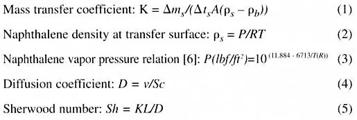 The equations necessary for computing the Sherwood number with naphthalene as the transfer substance are given by: