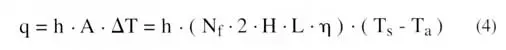 Of course, we are interested in the total heat transfer rate from the array of plates. This quantity depends not only on the natural convection heat transfer coefficient but also on the number of plates or fins, Nf. The total heat transfer rate is given by