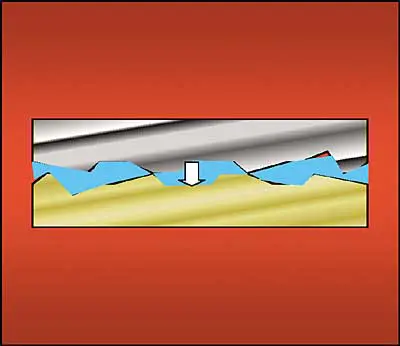 Traditional greases typically yield an interface resistance of about 1 K�cm2/W, while the newest products are in the 0.2 K�cm2/W range. As they are heated during usage, viscosity drops and they tend to further wet the contact surfaces, thus improving performance by lowering the interfacial resistance. An unfortunate consequence in applications that cycle on and off is a phenomenon known as “pump-out” in which the low viscosity grease is forced out of the interface, potentially contaminating neighboring components. In extreme circumstances the interface may go dry.