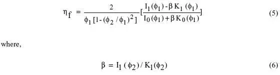 In order to determine the value of Rf using equation (1) it is necessary to determine the thermal efficiency of a radial fin [3]. This is given by: