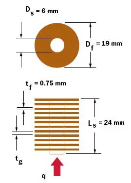 At this point the overall convective thermal resistance of the stacked radial fin heat may be calculated using: