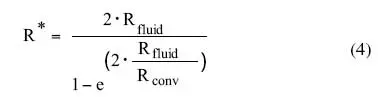 where Tf-in is the fluid inlet temperature and q is the heat flow rate. The convective thermal resistance is simply given by: