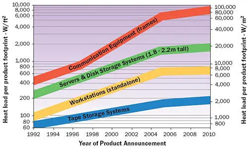 Figure 2. Power dissipation trend. (The Uptime Institute, Version 1.0, © 2000)