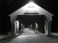 Built in 1872 and listed on the National Register of Historic Places, the West Dummerston covered bridge in Dummerston, Vt., had been lit by high-pressure-sodium (HPS) lights until they were replaced recently by Philips Gardco LED luminaires. According to the Building Green blog, local resident, electrician and regular bridge-crosser Stan Howe led a movement to have the HPS lights replaced by LED luminaires. A photosensor automatically controls the lights on the 267-foot span, and motion sensors can dim the lights when no automobiles are present.