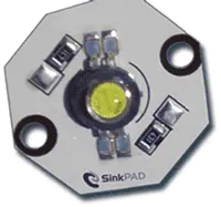 SinkPAD™ conducts heat out of the LED system (LED cooling) by enabling a direct thermal path between the LED and surrounding atmosphere, which eliminates thermal resistance introduced by the dielectric material in a traditional IMS PCB or MCPCB. The SinkPAD™ design completely removes the substance with the lowest thermal conductivity/highest thermal resistance from the structure. SinkPAD™ still uses a dielectric, but this dielectric isolates the metal base electrically and leaves it thermally connected.