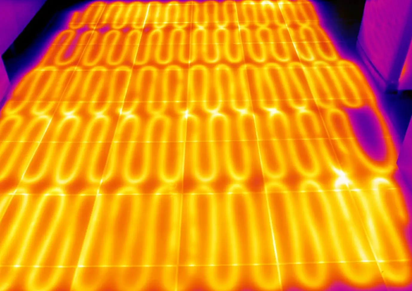 I haven’t got a infrared thermography imaging camera so can’t provide an exact side by side comparison of my model and my extension. The best I could come up with is this typical IR image of a similar floor. Note my model doesn’t (yet) include the effects of walls. Think of it as a section in a much wider floor so it doesn’t show the cold edges. There is the same results colourmap available though to aid in such real vs. simulation comparisons: