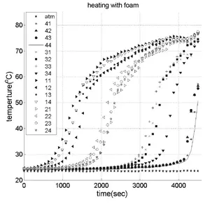 Table 1 gives the maximum temperature and the time required for the wax to melt for the two cases. The foam reduced the heating time by 15%, while the maximum temperature was 11% less than for no-foam heating.