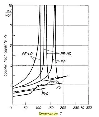 Figure 1. The temperature dependence of the specific heat for some plastics.