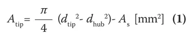 Figure 3 (a) shows a schematic diagram of the test enclosure used in this study. Air flows into the enclosure from the surroundings through an inlet and exhausted to the atmosphere via the test fan. The width and the height of the enclosure (wen, hen) were set at 41 mm and the length len was set at 130 mm. Figure 3 (b) shows the shapes of the enclosure inlet. Table 2 shows the list of the total inlet area. 5 types of the inlet plate were used. The condition of the area of the inlet was evaluated by using bin. This is the ratio of the total inlet area Ain divided by the fan flow area Atip. Atip is expressed using the following relationships. Here, As is the profile area of the struts between the casing and the hub.