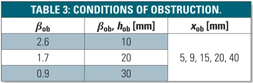 The value of bob was set at between 0.9 and 2.6. The distance between the fan and the obstruction was changed from 5 mm to 40 mm.