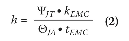 where kEMC and tEMC are the thermal conductivity and thickness above the die of the epoxy molding compound comprising the overmolded cap. Specific values of these parameters are provided in Table 1.