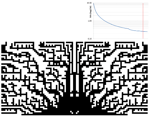 is actually slightly more refined. If the addition of a small piece of geometry leads to an increase in heatsink base temperature (or not a substantial enough decrease), then that piece of geometry is removed and that location marked so as not to add there subsequently. The next hottest location is then considered, and so on.