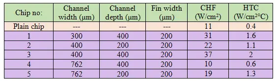 Table 1. Dimensions of open microchannel geometry used in the study with FC-87 as the boiling liquid.