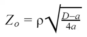 Where Zo is the characteristic impedance, ρ is the resistivity of the thin film, D is the distance between the ground electrodes, and a is the thickness of the center electrode.