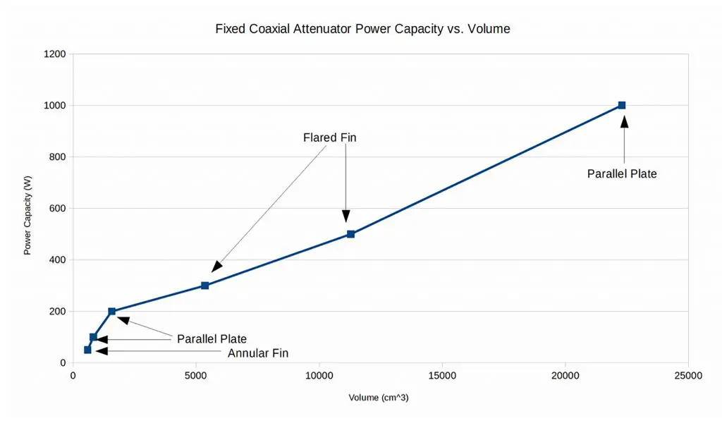 RF attenuators and terminations must ultimately strike a balance between maximum frequency and power handling. Once the internal dimensions of the resistive network have been devised there are a number of other factors to maximize heat dissipation including: