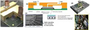 The coolant is pumped into the chips, where it removes the heat from the chip by boiling from liquid-phase to vapor-phase. It then re-condenses, dumping the heat to the ambient environment where the process begins again, as shown in Figure 2. As this cooling system doesn’t need a compressor, it can operate at much lower power compared to typical refrigeration systems. Key elements of the approach and results are presented in this article, with additional details available in references [1-10].