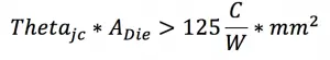 where BLT is the bond line thickness and KTIM II is the thermal conductivity of TIM II. Theta TIM II may be approximated conservatively in Equation (4) by setting the heat transfer area equal to the die area. This is somewhat conservative because the packaging materials above and around the die promotes thermal spreading thereby increasing the effective heat transfer surface at the case. By increasing the thermal conductivity of the TIM II, lower Thetajc packages may be tested with the embedded thermocouple heat sink. For this study, the silver-filled grease selected as the TIM II material has a reported thermal conductivity of 9 W/m-K. For these calculations, a more conservative estimate of 8W/m-K was used for the TIM II thermal conductivity. A BLT thickness of 50 μm was assumed. Solving for Thetajc * ADie in Equation (5) yields an approximation for the critical limit when a heat sink with an embedded thermocouple may be used to measure Thetajc.