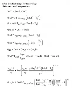 To use this method, systems of fundamental, simultaneous equations are written and solved. In the authors’ experience this is tractable if the number of equations and unknowns is under 25 or so; beyond that may be difficult to set up and solve effectively, depending on the solution algorithm. The equations are forms of the three basic heat transfer equations for conduction, convection and radiation familiar to the reader: