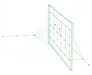 These two types of models then need to be combined for a solution. With the proper heat transfer equations one can connect these two parts. Perhaps the simplest manner to model this is to use the finite difference modeler. A discretized model is feasible for the well-defined portion of the model, and simple thermal resistance elements make up the connections to the undefined areas and the undefined geometry as well. As an example, see Figure 2. A portion of the model is well discretized and defined, while the rest of the model is composed of few elements. Model creation, with the solutions for different scenarios, is a straightforward process. The flexibility this approach provides for the unknown geometry is useful to find a final design that should meet the system temperature requirements, while providing good fidelity for the known geometry thermal profile.