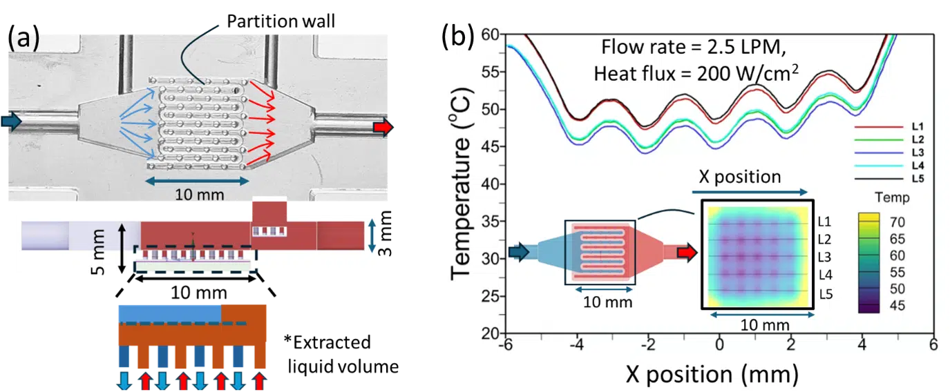In this regard, a novel manifold design can be used to integrate the inlet and outlet plenum into a single plane, where inlet and outlet liquids can be separated with a partition wall, see Figure 2 [5].