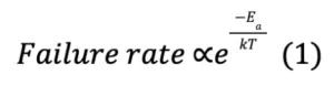 Now considering the typical operating temperature of electronics of around 100°C and an activation energy of approximately 1, an acceleration factor of approximately 2 arises from Equation 2 [9]. Hence the oft-repeated heuristic that a 10°C reduction in temperature will double device lifetime. This heuristic, however convenient and grounded in apparently sound logic it may appear, often results in an overly simplistic and ultimately inaccurate analysis.