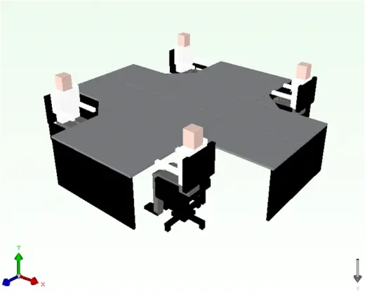 There is an art to modelling, not so much in the mechanics of building a model (which both FloTHERM and FloVENT are well renowned for), but in knowing ‘how’ to model something, to what level of detail to go to, what methodology to use. A case in point here was in modelling the desktop workstations positioned under the tables. Joe’s question was whether he should model the internals of the case, the motherboard, PSU etc. This bought us on the important subject of having to be aware of the motivation for doing the simulation. In this case to see how hot (or cold) people got. So, “would modelling the internals of the computer directly affect the predicted temperature of the office occupants?”. No, in being aware of the effects the computer has on the room you can determine that you only need model the case as a block and to model the intakes and exhaust vents on the surface, defining the total power consumed by the computer and the air speed of the air exiting it. “How do I get that data” Joe asked. Welcome to the wonderful world of simulation data mining, estimating and guessing son. There was an opportunity then to go on about simulation supply chain data integration, the use of FloTHERM to model the computer and pass that model onto the FloVENT user, but I decided to keep things simple.