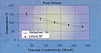 The most important material within the semiconductor industry is Silicon. When dealing with electro-thermal device modelling, or the interpretation of fast transient techniques for the measurement of thermal impedance, thermal conductivity of Silicon is required. For steady state thermal analyses at the board and system level, however, accurate values are not required, because the influence of the Silicon on the overall performance is limited.