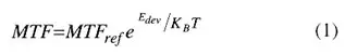 where, MTFref is the mean time to failure at a specified reference temperature, KB is the Boltzman’s constant and Edev is the device activation energy (eV).
